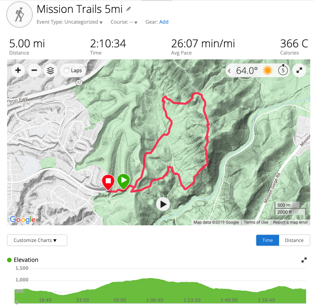 The Pacific Crest Trail runs 2,650 miles from Mexico to Canada. We’ve hiked portions of this trail in California, Oregon, and Washington, but this time we started at the southern terminus (well, technically 2 miles from Mexico). The day we went, we didn’t pass a single person on the trail and ended up hiking 7 miles. It was an overcast and cool day, which made it perfectly enjoyable as there is minimal shade. We did an out and back, and would call this section on the moderate end of easy. There was <900 ft. of elevation gain and the trail was very even; it would be a great trail to run. There was one stream crossing along the way and a couple of vantage points looking out over the valley to Mexico. This was a great day hike not too far from the city.